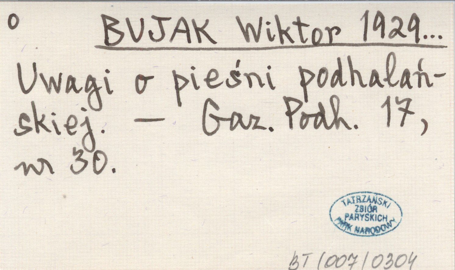 BUJAK Wiktor 1929... Uwagi o pieśni podhalańskiej.