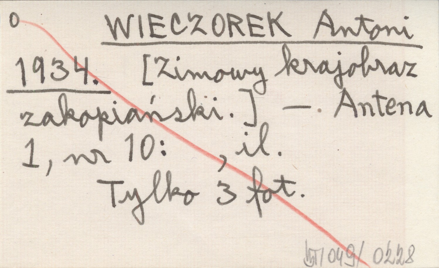 WIECZOREK Antoni 1934 [Zimowy krajobraz zakopiański].