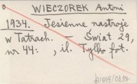 WIECZOREK Antoni 1934 Jesienne nastroje w Tatrach.