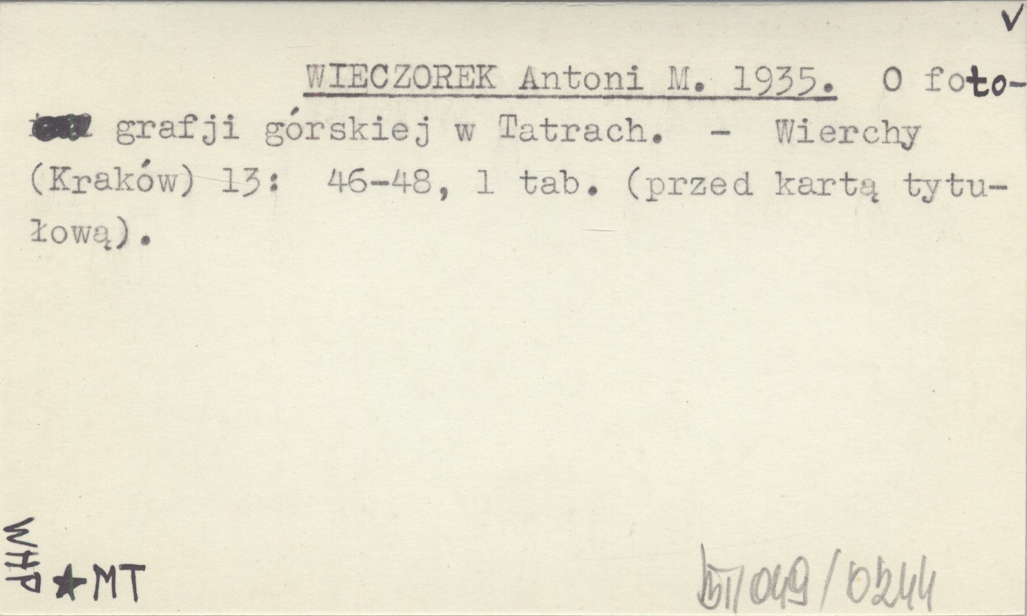 WIECZOREK Antoni M. 1935 O fotografji górskiej w Tatrach.