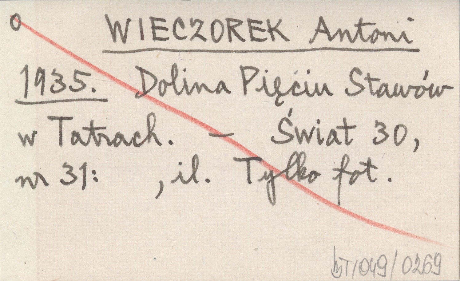 WIECZOREK Antoni 1935 Dolina Pięciu Stawów w Tatrach.