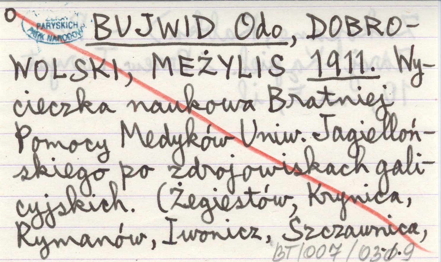 BUJWID Odo DOBROWOLSKI. ; MEŻYLIS. ; 1911 Wycieczka naukowa Bratniej Pomocy Medyków Uniwersytetu Jagiellońskiego po zdrojowiskach galicyjskich. (Żegiestów, Krynica, Rymanów, Iwonicz, Szczawnica, Zakopane, Rabka).