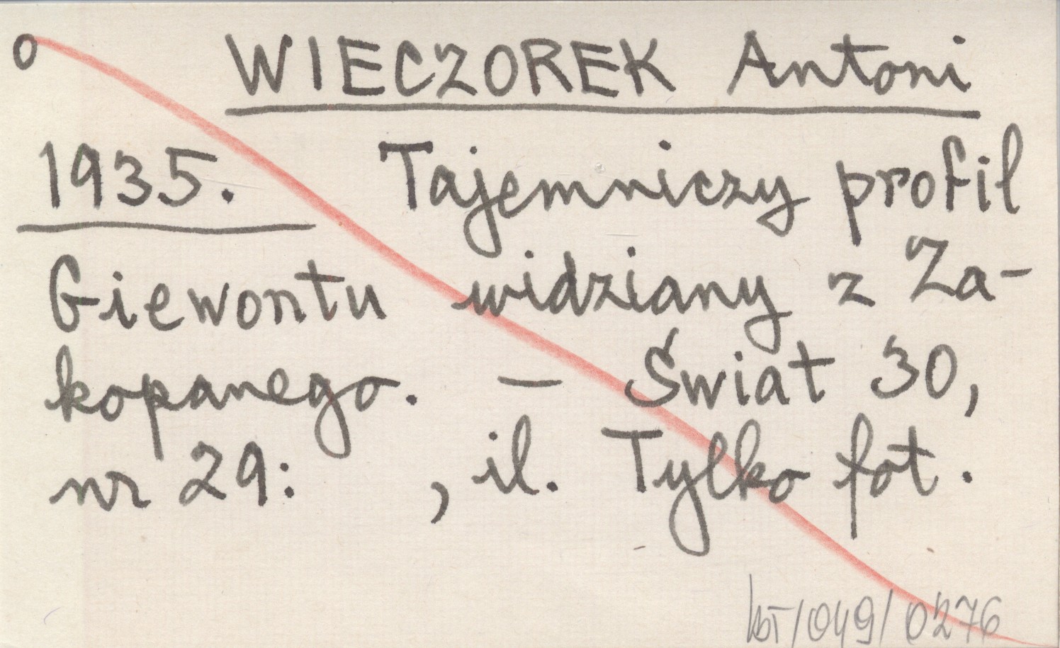 WIECZOREK Antoni 1935 Tajemniczy profil Giewontu widziany z Zakopanego.