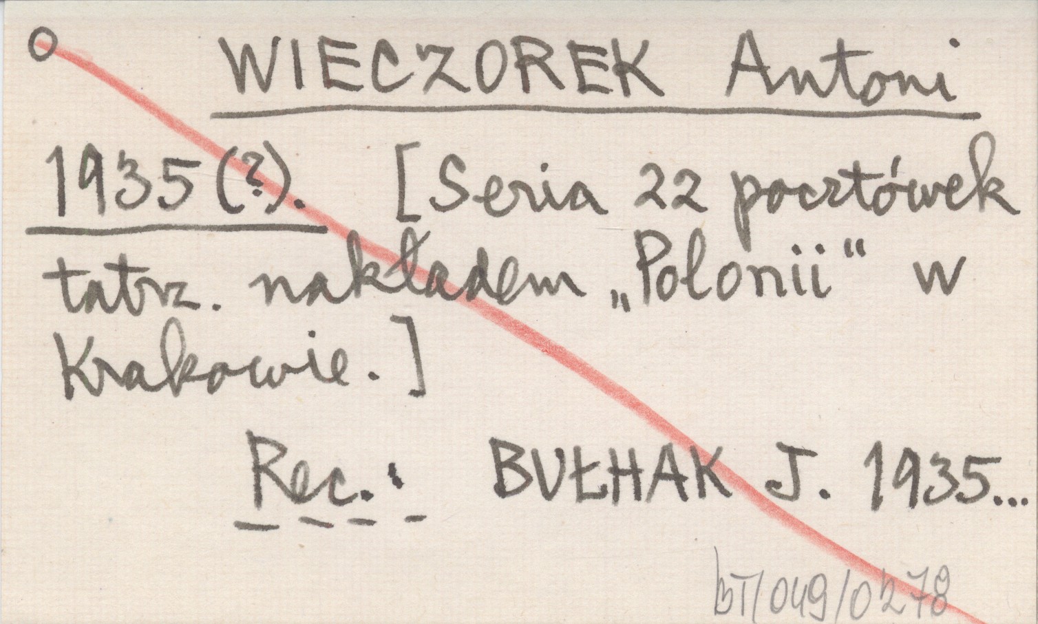WIECZOREK Antoni 1935 (?) [Seria 22 pocztówek tatrz. nakładem "Polonii" w Krakowie].