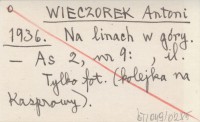 WIECZOREK Antoni 1936 Na Zawarcie w Tatrach.