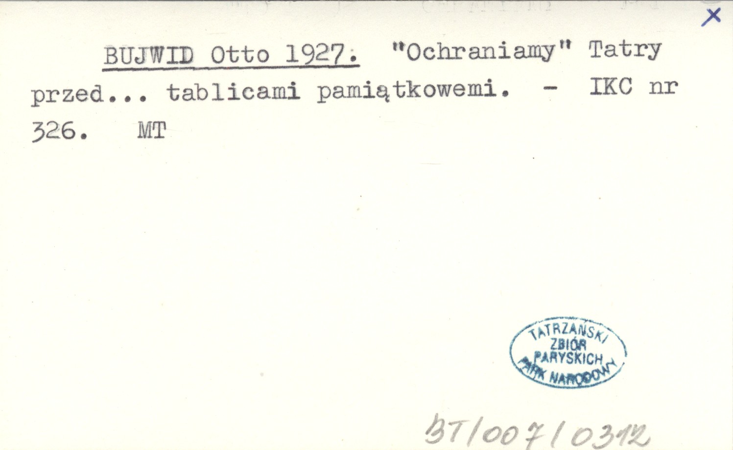 BUJWID Otto 1927 "Ochraniamy" Tatry przed ... tablicami pamiątkowemi.
