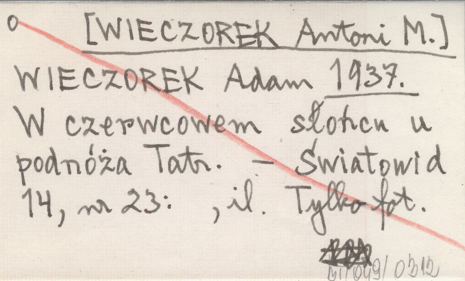 WIECZOREK Adam [WIECZOREK Antoni M.] 1937 W czerwcowem słońcu u podnóża Tatr.