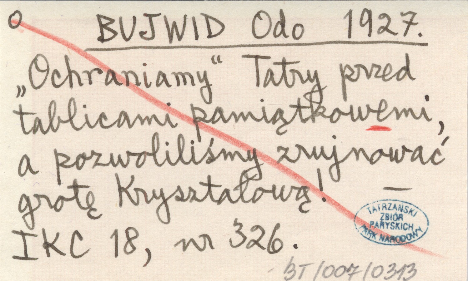 BUJWID Odo 1927 "Ochraniamy" Tatry przed tablicami pamiątkowemi, a pozwoliliśmy zrujnować grotę Kryształową!