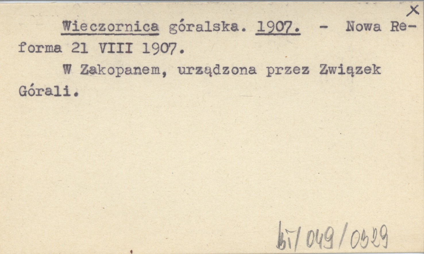 Nowa Reforma, 21 VIII 1907. W Zakopanem, urządzona przez Związek Górali.