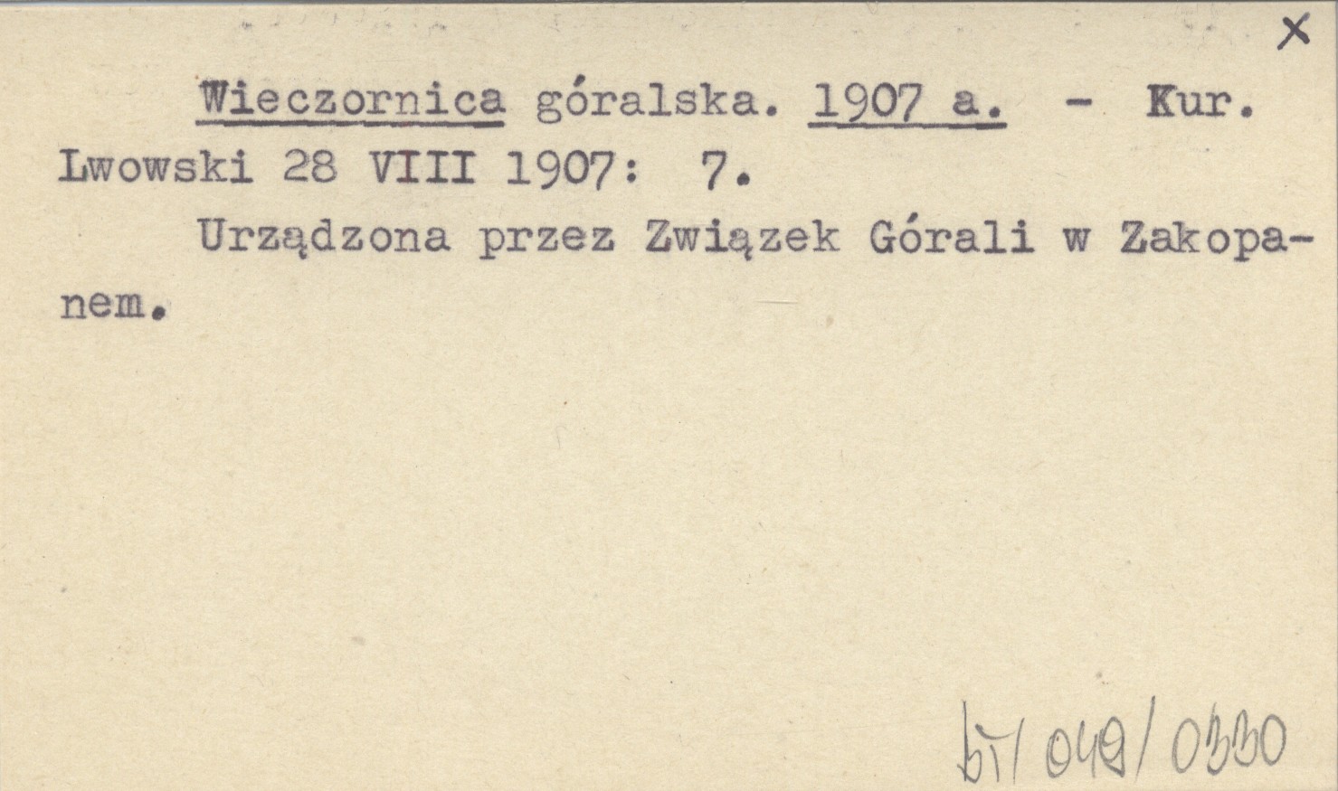 Kurjer Lwowski, 28 VIII 1907: 7. Urządzona przez Związek Górali w Zakopanem.