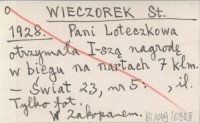 WIECZOREK St. 1928 Pani Loteczkowa otrzymała I-szą nagrodę w biegu na nartach 7 klm.