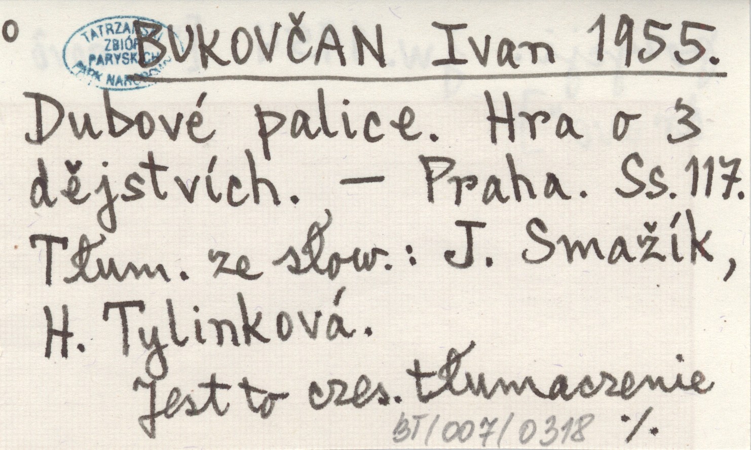 BUKOVČAN Ivan 1955 Dubové palice. Hra a 3 dějstvích.
