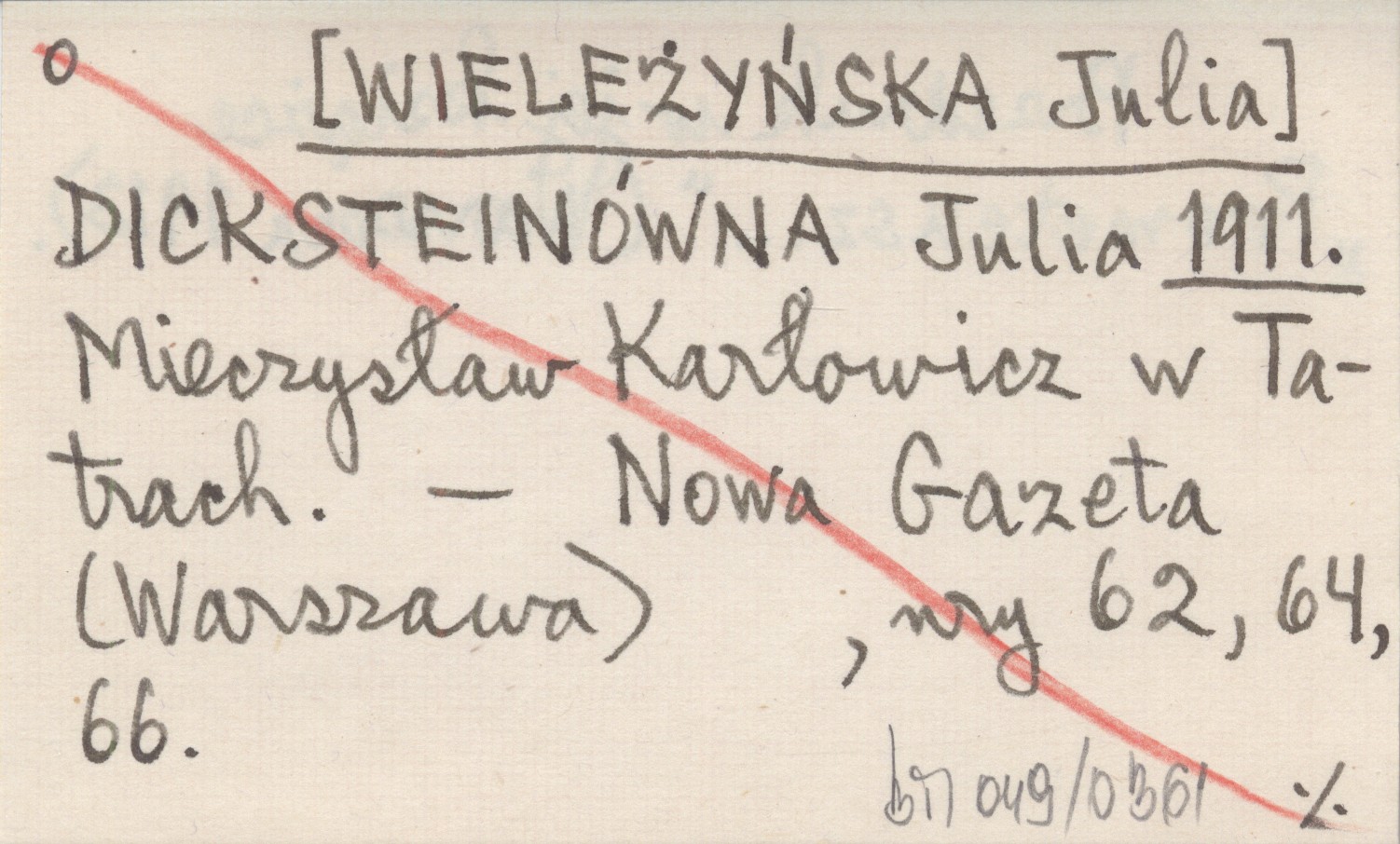DICKSTEINÓWNA Julia [WIELEŻYŃSKA Julia] 1911 Mieczysław Karłowicz w Tatrach.