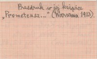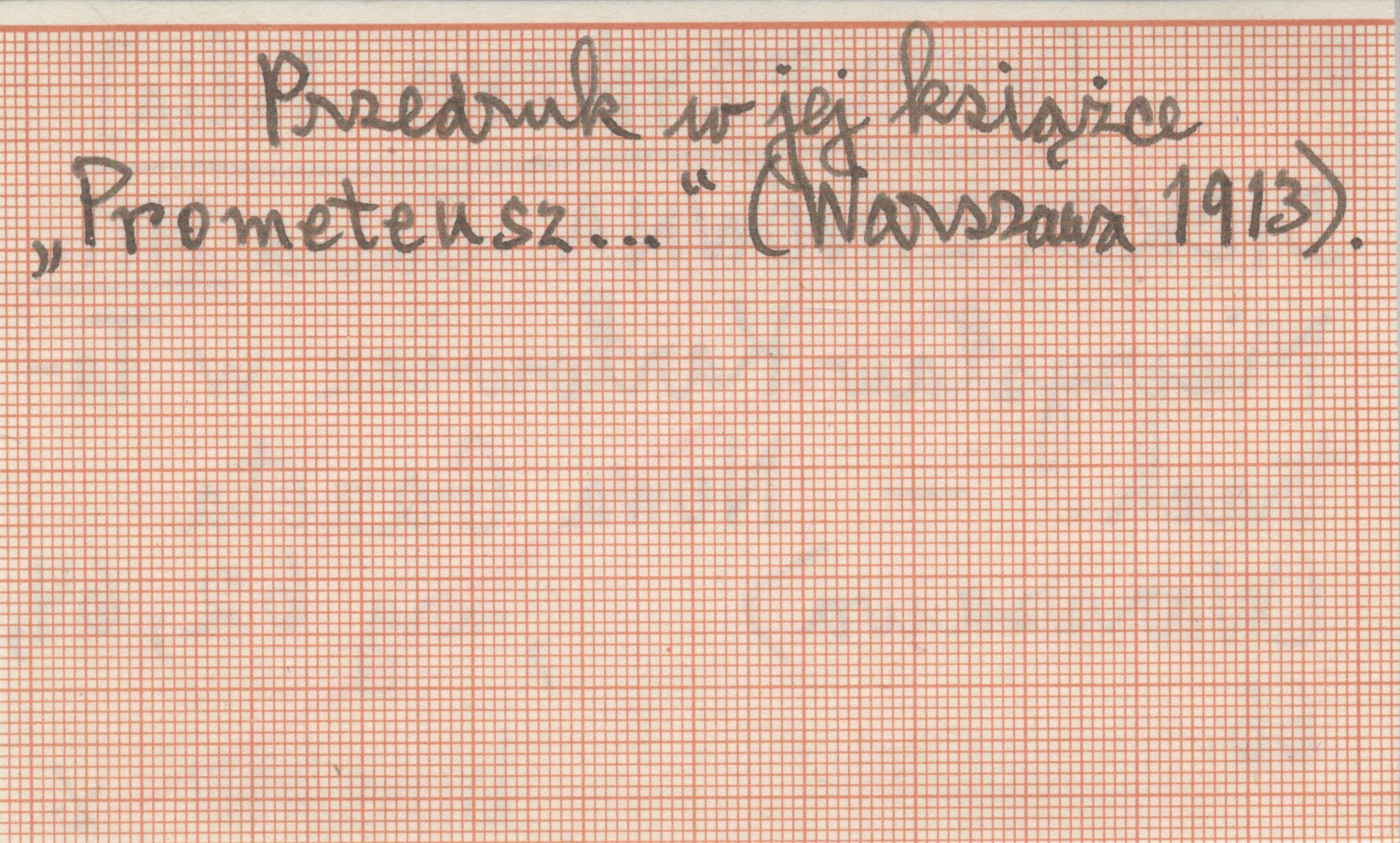 Nowa Gazeta (Warszawa) , Nr 62, 64, 66. Przedruk w jej książce "Prometeusz..." (Warszawa 1913).