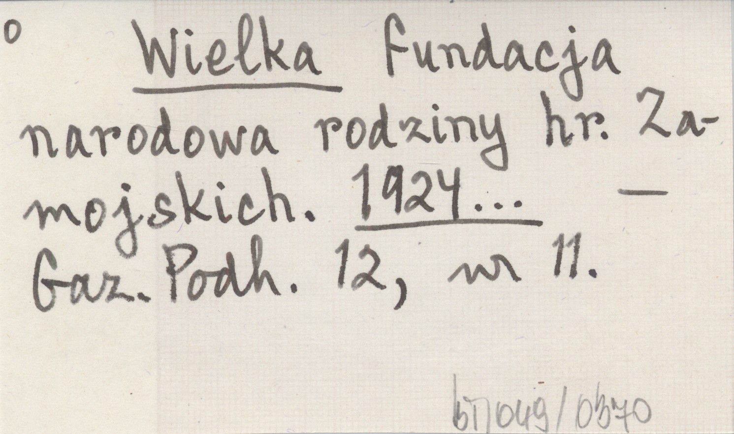 Wielka fundacja narodowa rodziny hr. Zamojskich. 1924...