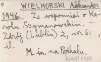 WIELHORSKI Aleksander 1946 Ze wspomnień o Karolu Szymanowskim.