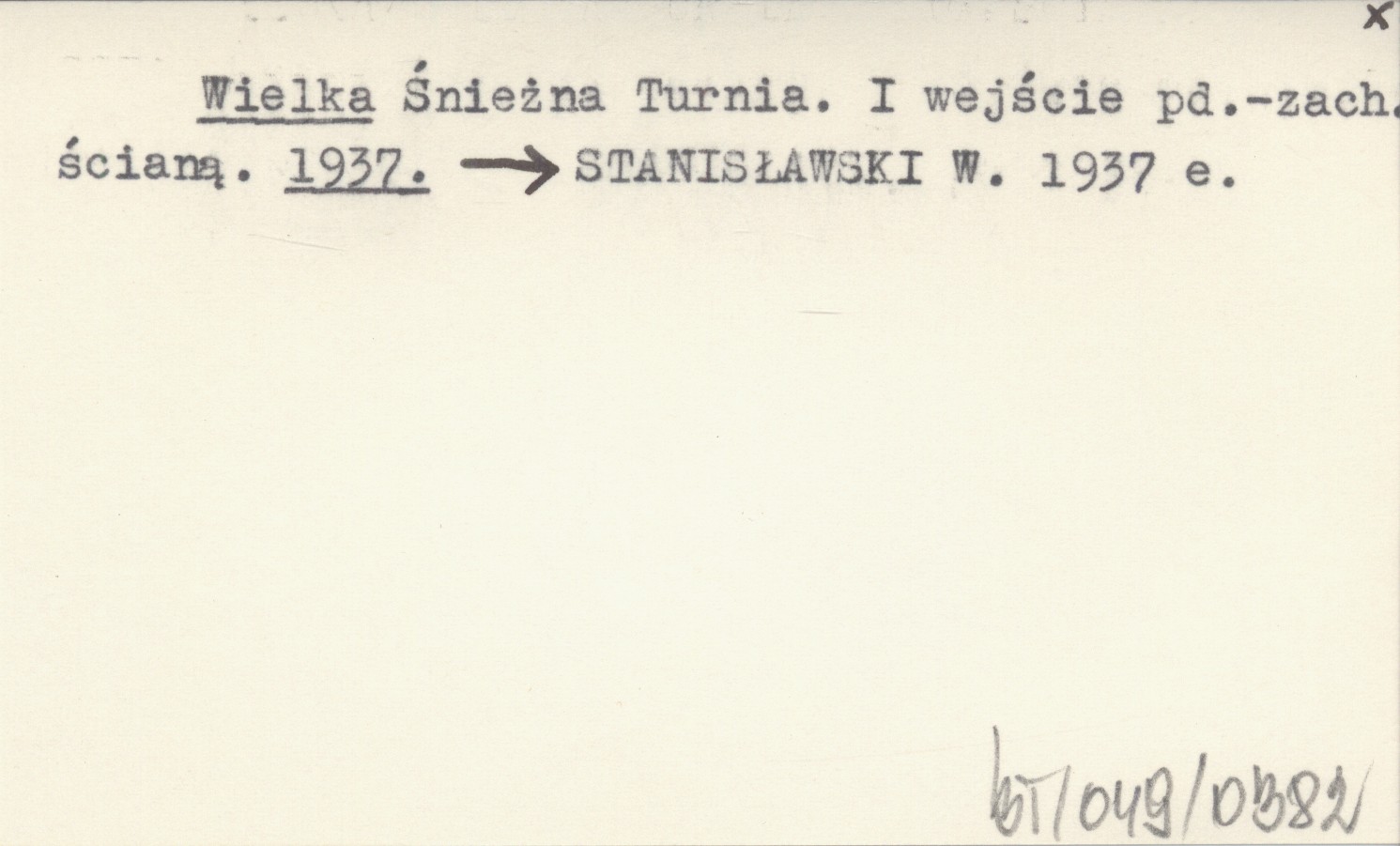 Wielka Śnieżna Turnia. I wejście pd.-zach. ścianą. 1937