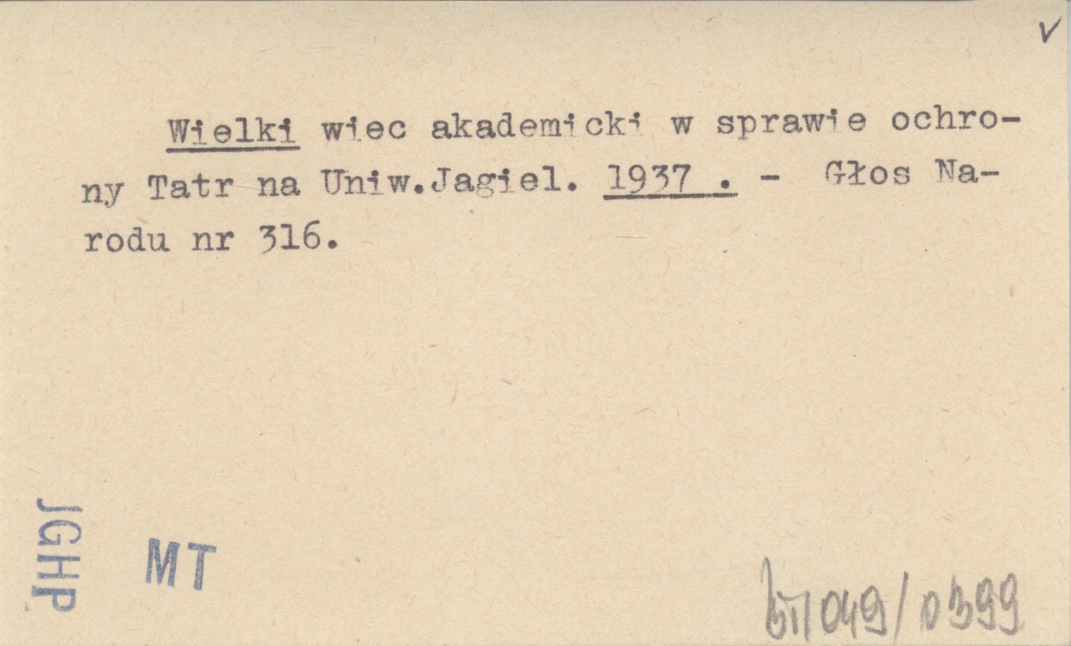 Wielki wiec akademicki w sprawie ochrony Tatr na Uniw.Jagiel. 1937