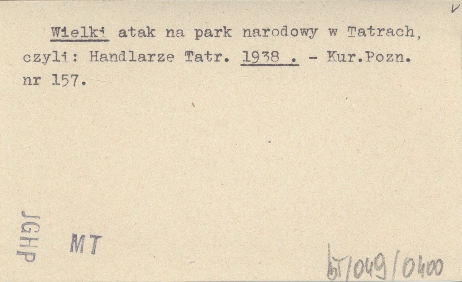 Wielki atak na park narodowy w Tatrach, czyli: Handlarze Tatr. 1938