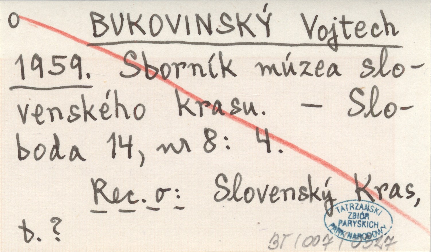 BUKOVINSKÝ Vojtech 1959 Sborník múzea slovenského krasu.