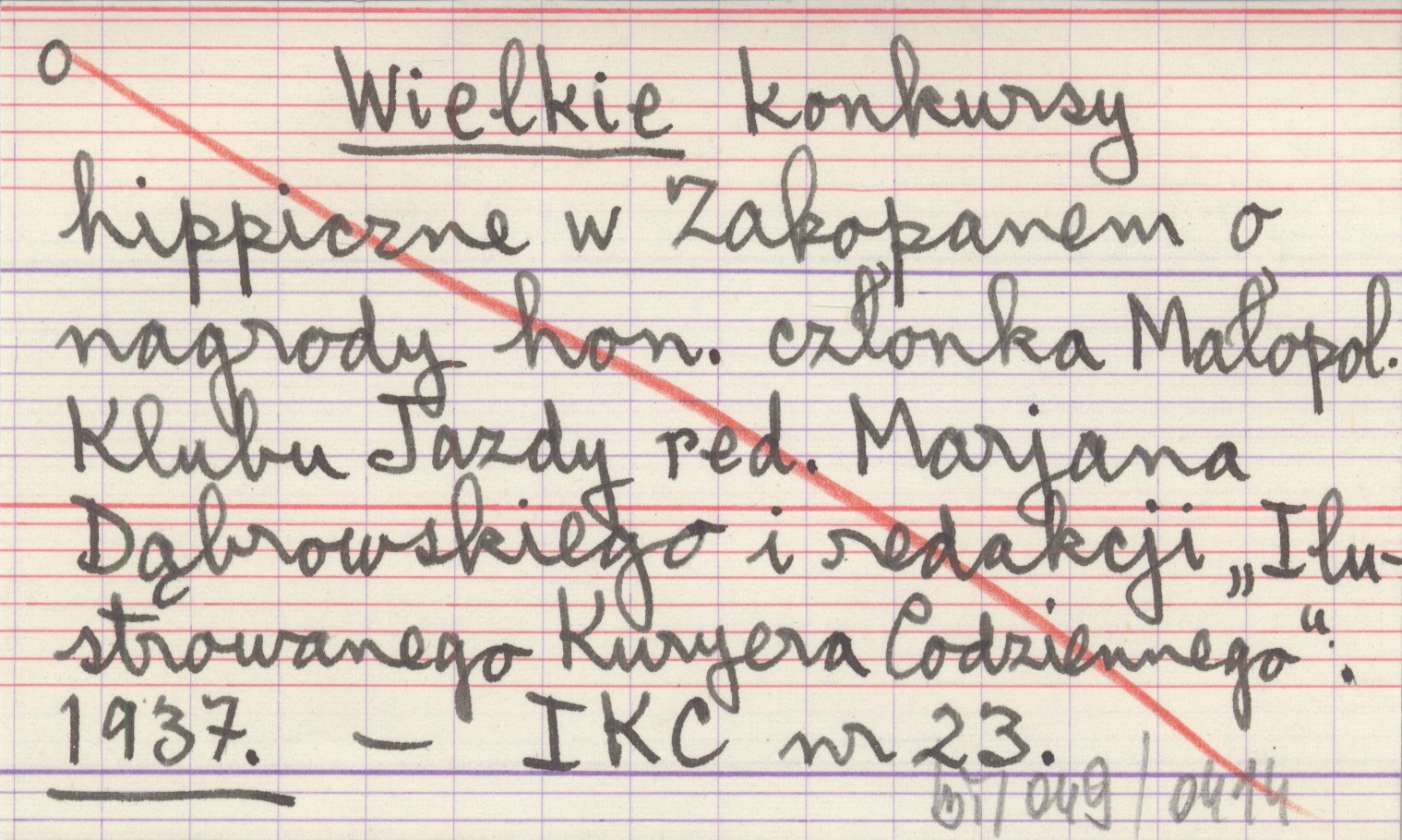 Wielkie konkursy hippiczne w Zakopanem o nagrody hon. członka Małopol. Klubu Jazdy red. Marjana Dąbrowskiego i redakcji "Ilustrowanego Kuryera Codziennego". 1937