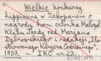 Wielkie konkursy hippiczne w Zakopanem o nagrody hon. członka Małopol. Klubu Jazdy red. Marjana Dąbrowskiego i redakcji "Ilustrowanego Kuryera Codziennego". 1937