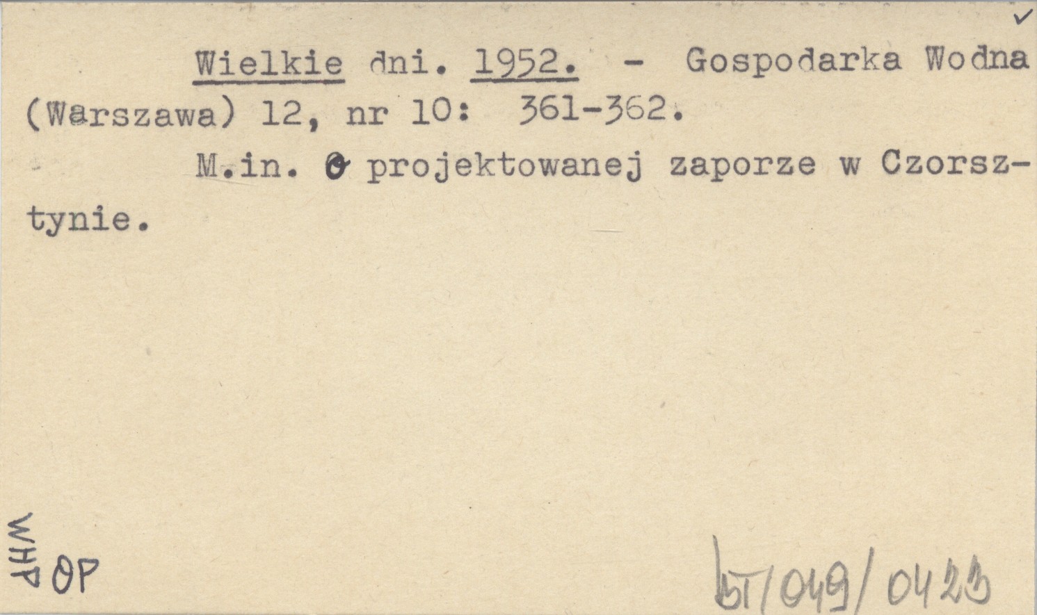 Gospodarka Wodna (Warszawa) , 12, nr 10: 361-362. M.in. o projektowanej zaporze w Czorsztynie.