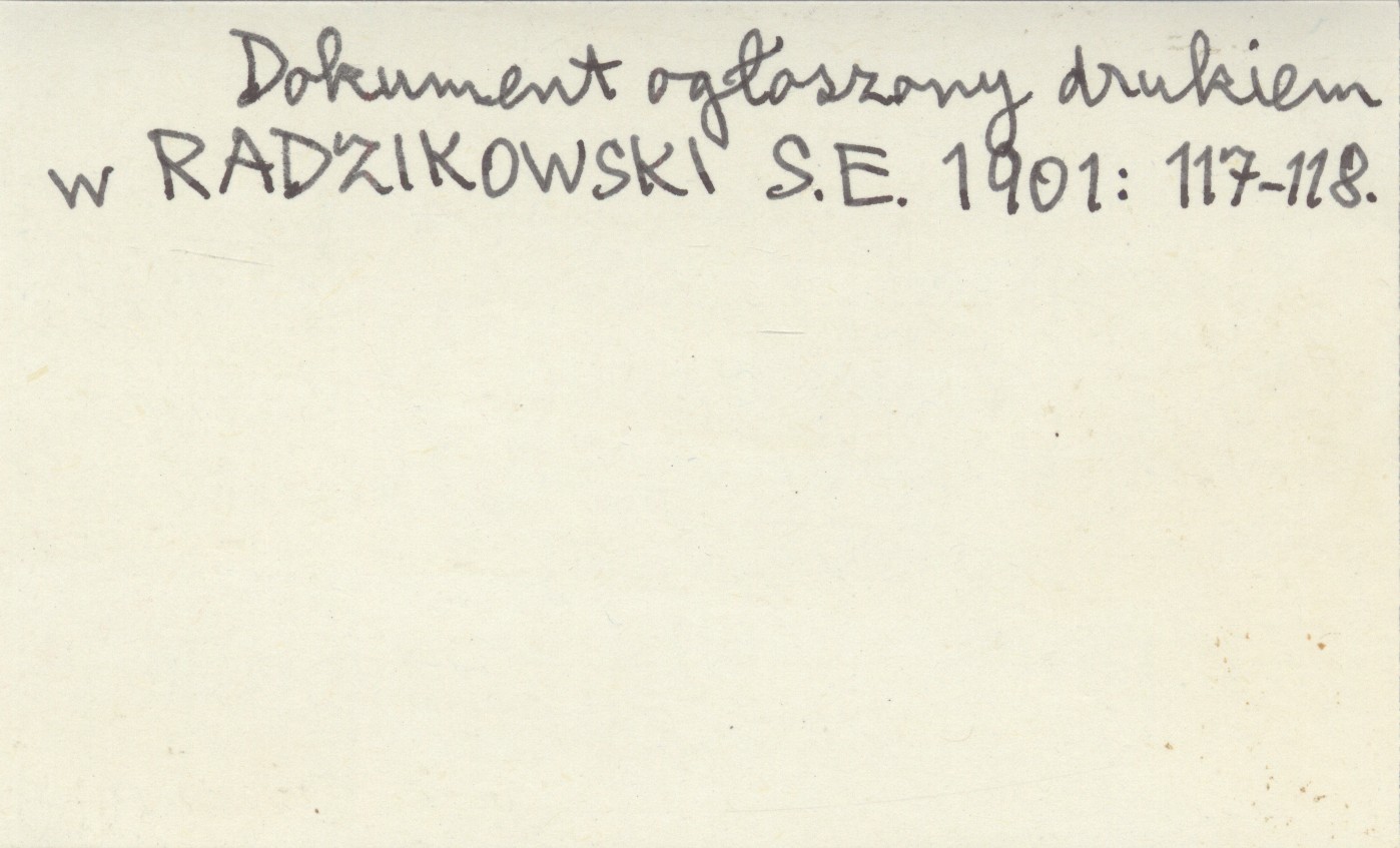 , [Inc.:] Dokument ogłoszony drukiem w RADZIKOWSKI S.E. 1901: 117-118.