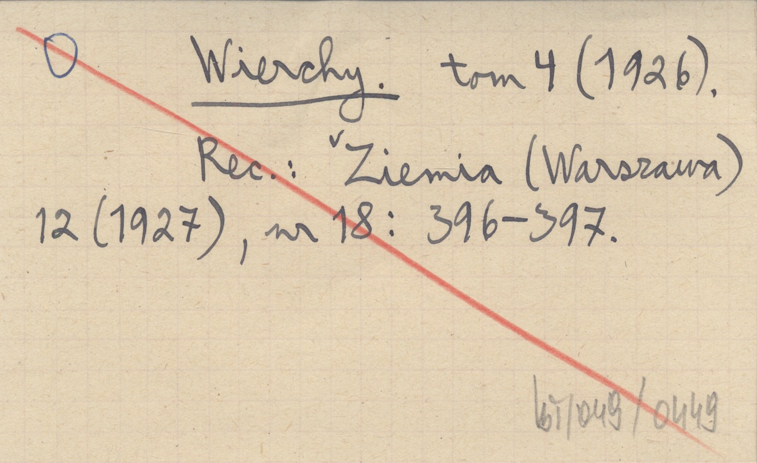 Wierchy, T. 4 (1926). REC: Ziemia (Warszawa) 12 (1927), nr 18: 396-397 ; ŚWIERZ M. 1928 n ;
