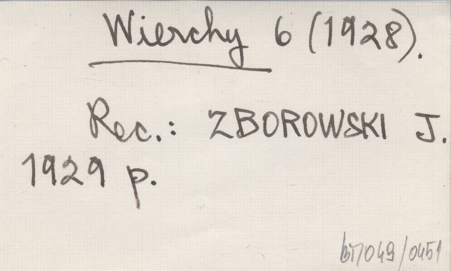 Wierchy, 6 (1928). REC: [CHMIELOWSKI Janusz] z.i., Taternik (Kraków) 13 (1929), nr 2: 47 ; GRABOWSKI Z. 1929... ; ZBOROWSKI J. 1929 p ; Wiad. Geogr. 7 (1929): 20 ;