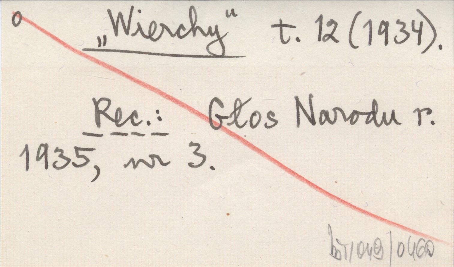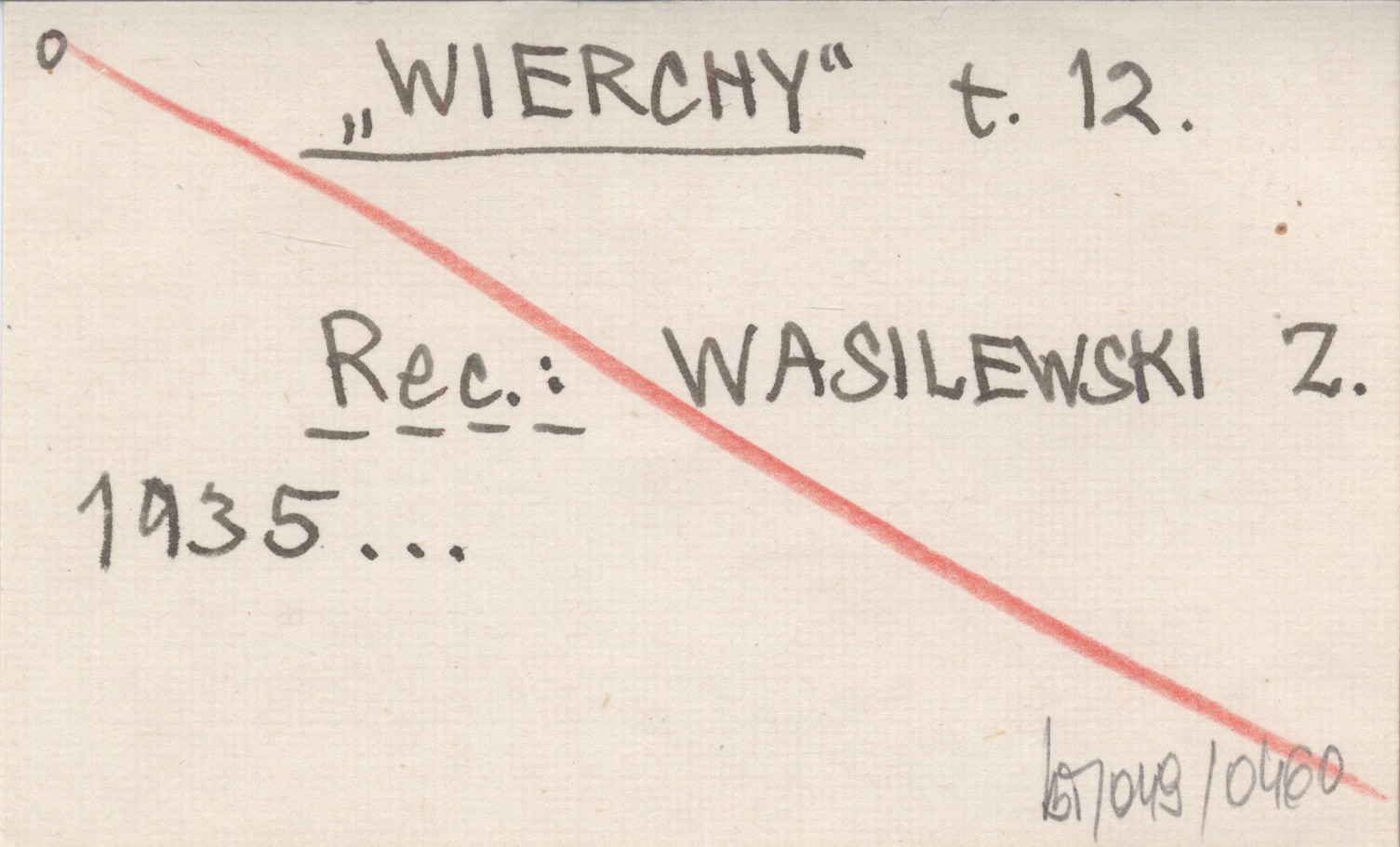 Wierchy, T. 12 (1934). REC: Głos Narodu r. 1935, nr 3 ; WASILEWSKI Z. 1935... ; ČECH E. 1935... ;