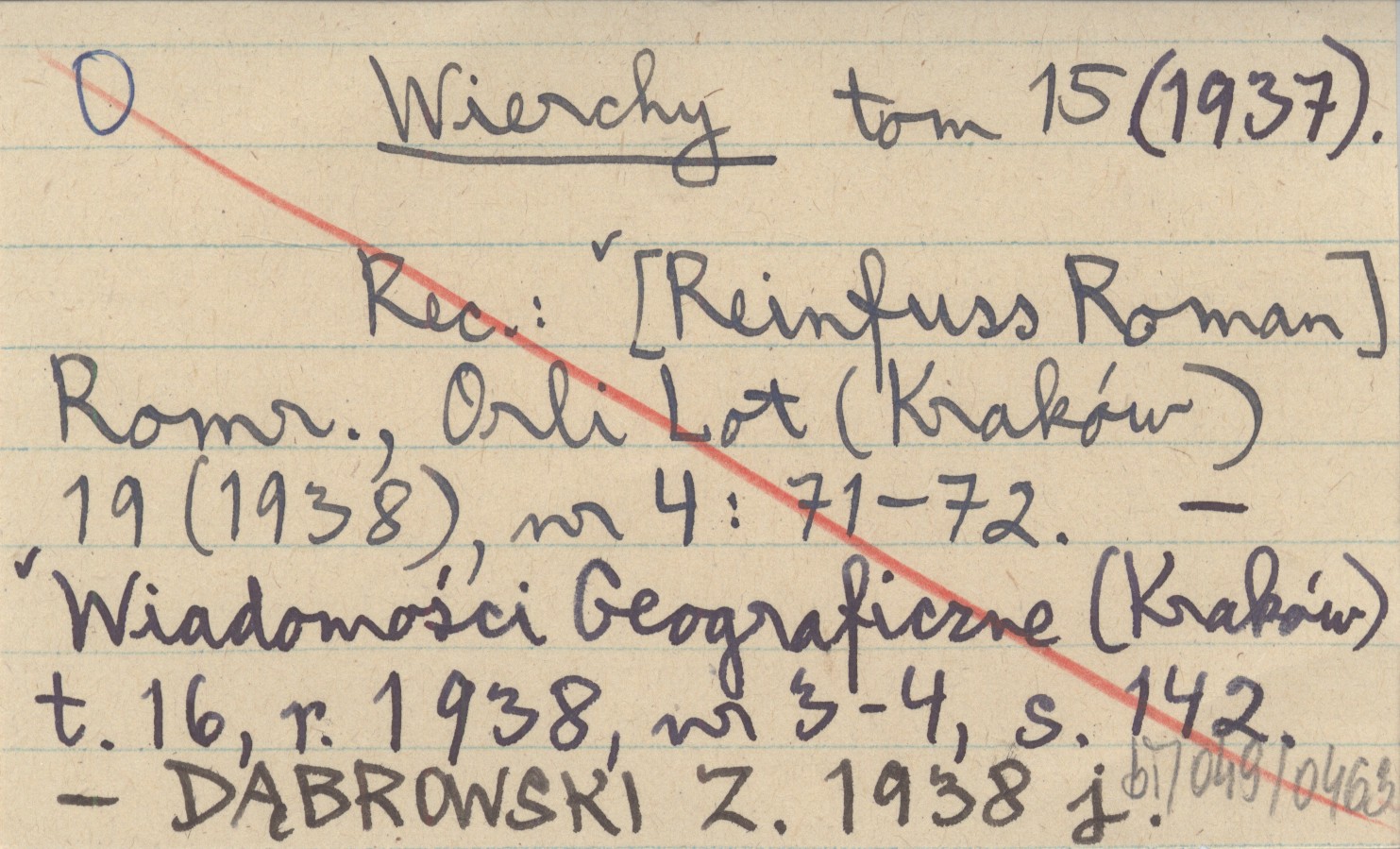 Wierchy, T. 15 (1937). REC: [REINFUSS Roman] Romr., Orli Lot (Kraków) 19 (1938), nr 4: 71-72 ; Wiadomości Geograficzne (Kraków) t. 16, r. 1938, nr 3-4: 142 ; DĄBROWSKI Z. 1938 j ;