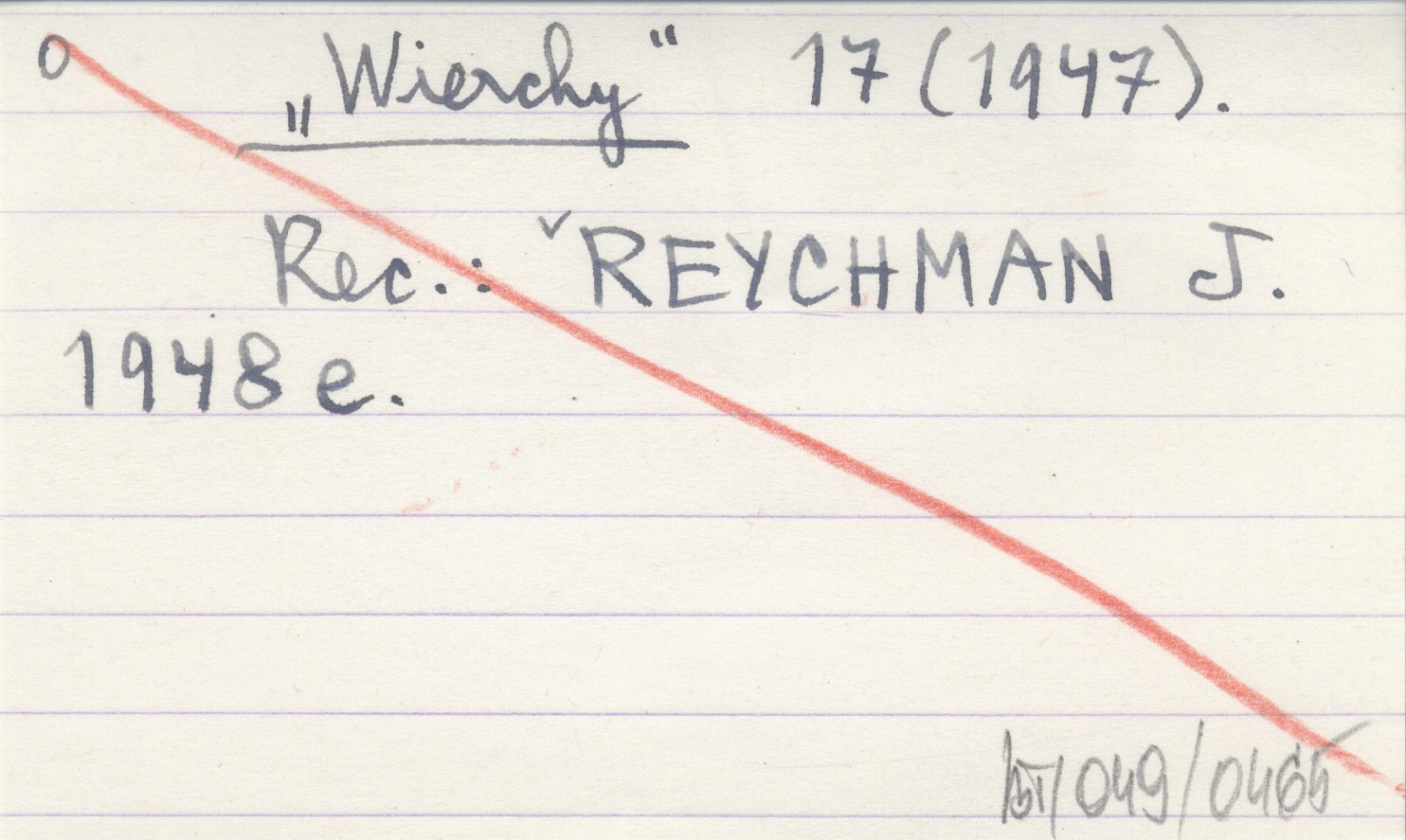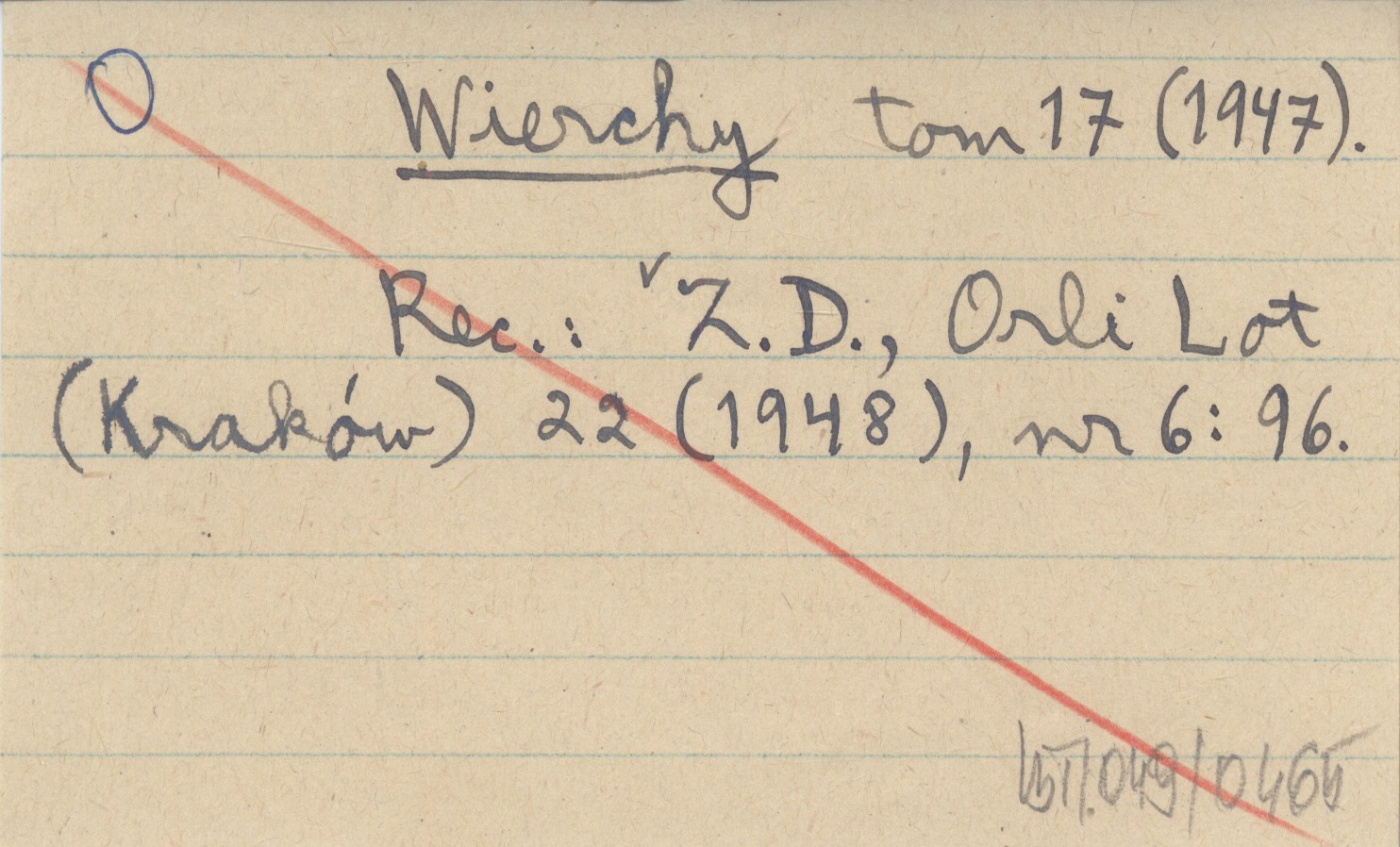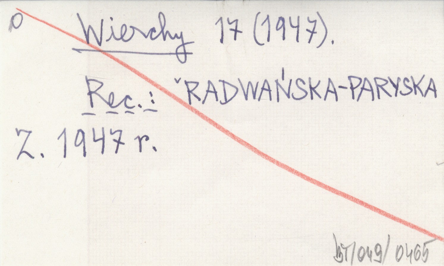 Wierchy, T. 17 (1947). REC: RADWAŃSKA-PARYSKA Z. 1947 r. ; [BRZEZICKI Arkady] A.B., Wychowanie Fizyczne (Warszawa) 2 (22) (1948), nr 4: 56 ; REYCHMAN J. 1948 e ; Z.D., Orli Lot (Kraków) 22 (1948), nr 6: 96 ;