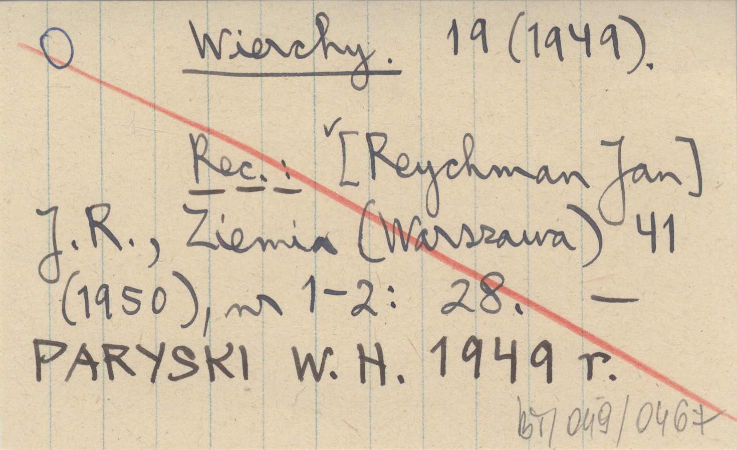 Wierchy, 19 (1949). REC: [REYCHMAN Jan] J.R., Ziemia (Warszawa) 41 (1950), nr 1-2: 28 ; PARYSKI W.H. 1949 r. ;