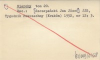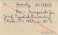 Wierchy, 20 (1950-1951). REC: T.G., Turystyka (Warszawa) r. 1952, nr 3: 16-17 ; SZCZEPAŃSKI Jan Józef, JJS, Tygodnik Powszechny (Kraków) r. 1952, nr 12: 3 ;