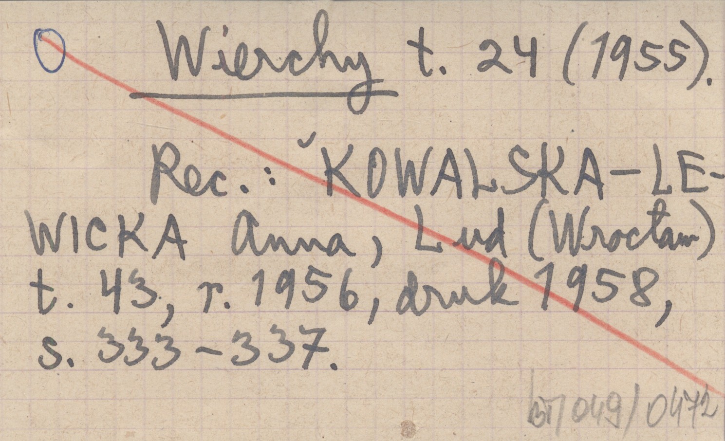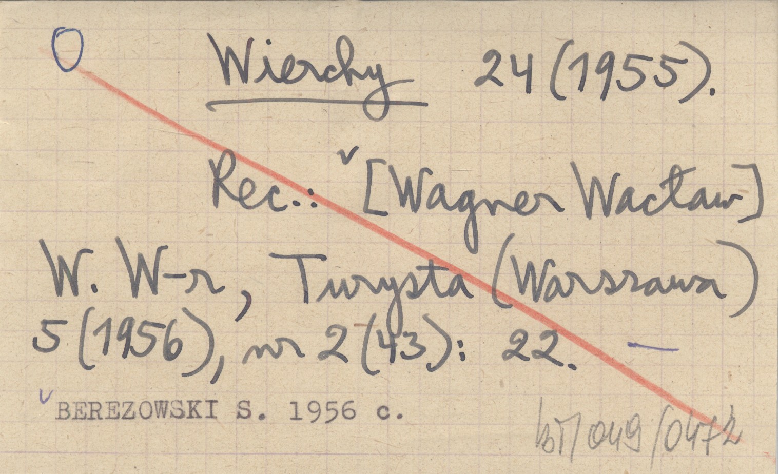 Wierchy, T. 24 (1955). REC: KOWALSKA-LEWICKA Anna, Lud (Wrocław) t. 43, r. 1956, druk 1958: 333-337 ; [WAGNER Wacław] W. W-r, Turysta (Warszawa) 5 (1956), nr 2 (43): 22 ; BEREZOWSKI S. 1956 c ;