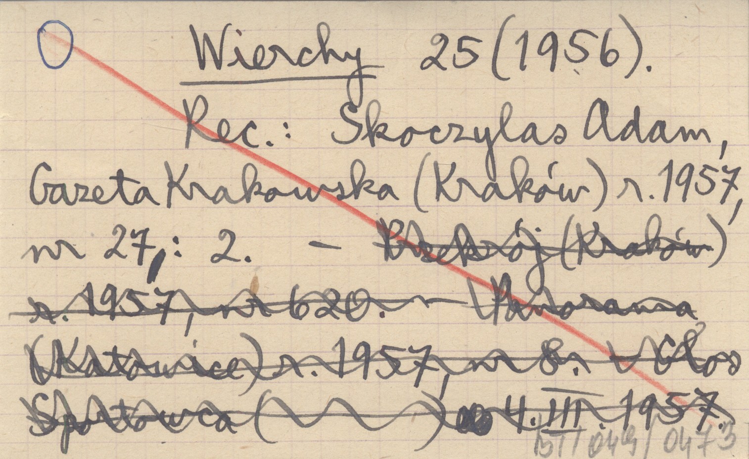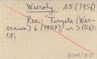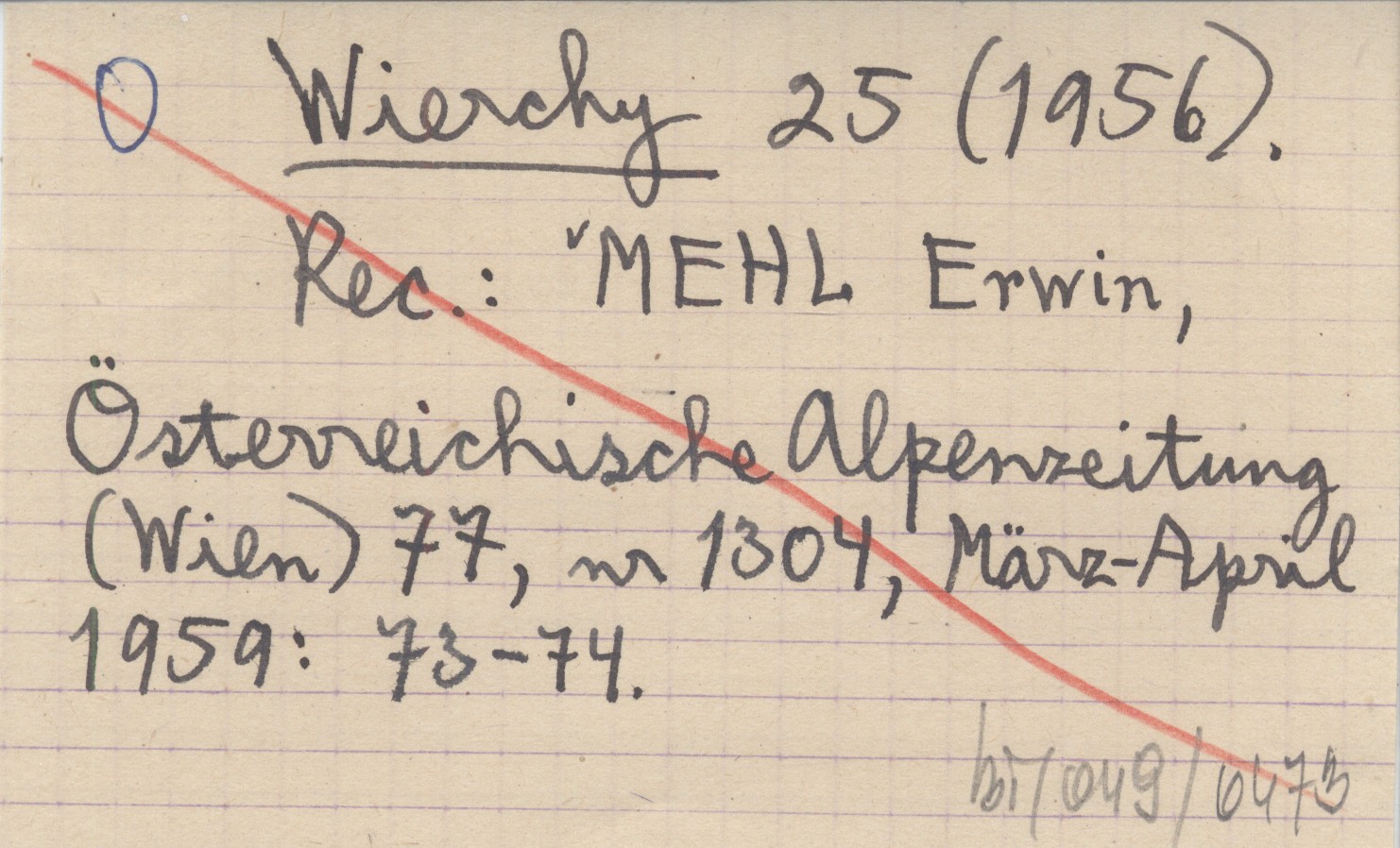 Wierchy, 25 (1956). REC: SKOCZYLAS Adam, Gazeta Krakowska (Kraków) r. 1957, nr 27: 2 ; a. 1957 ; MEHL Erwin, Österreichische Alpenzeitung (Wien) 77, nr 1304, März-April 1959: 73-74 ; SIADEK Bronisław, Poznaj Świat (Warszawa) 5 (1957), nr 3: 45, il. ; Turysta (Warszawa) 6 (1957), nr 3 (56): 15 ;