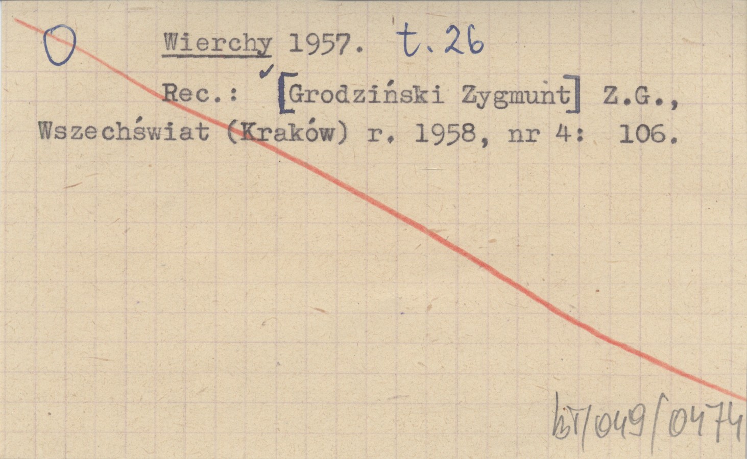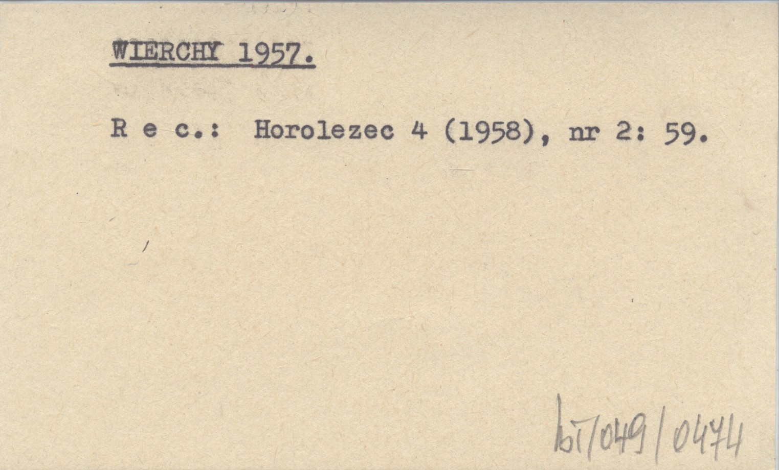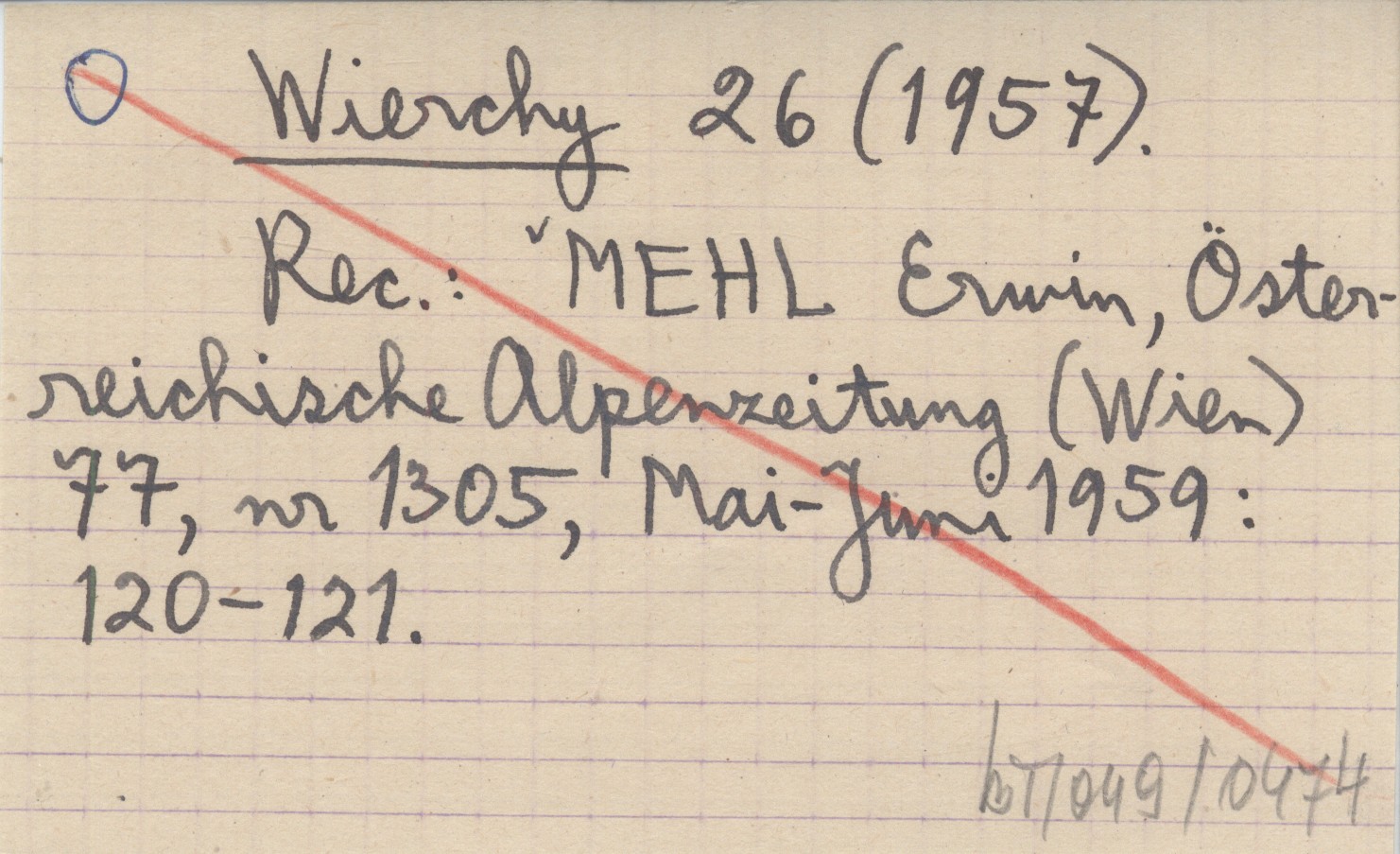 Wierchy, T. 26 (1957). REC: MEHL Erwin, Österreichische Alpenzeitung (Wien) 77, nr 1305, Mai-Juni 1959: 120-121 ; [GRODZIŃSKI Zygmunt] Z.G., Wszechświat (Kraków) r. 1958, nr 4: 106 ; Horolezec 4 (1958), nr 2: 59 ; Świat (Warszawa) 8, nr 14, 6 IV 1958: 23 ;