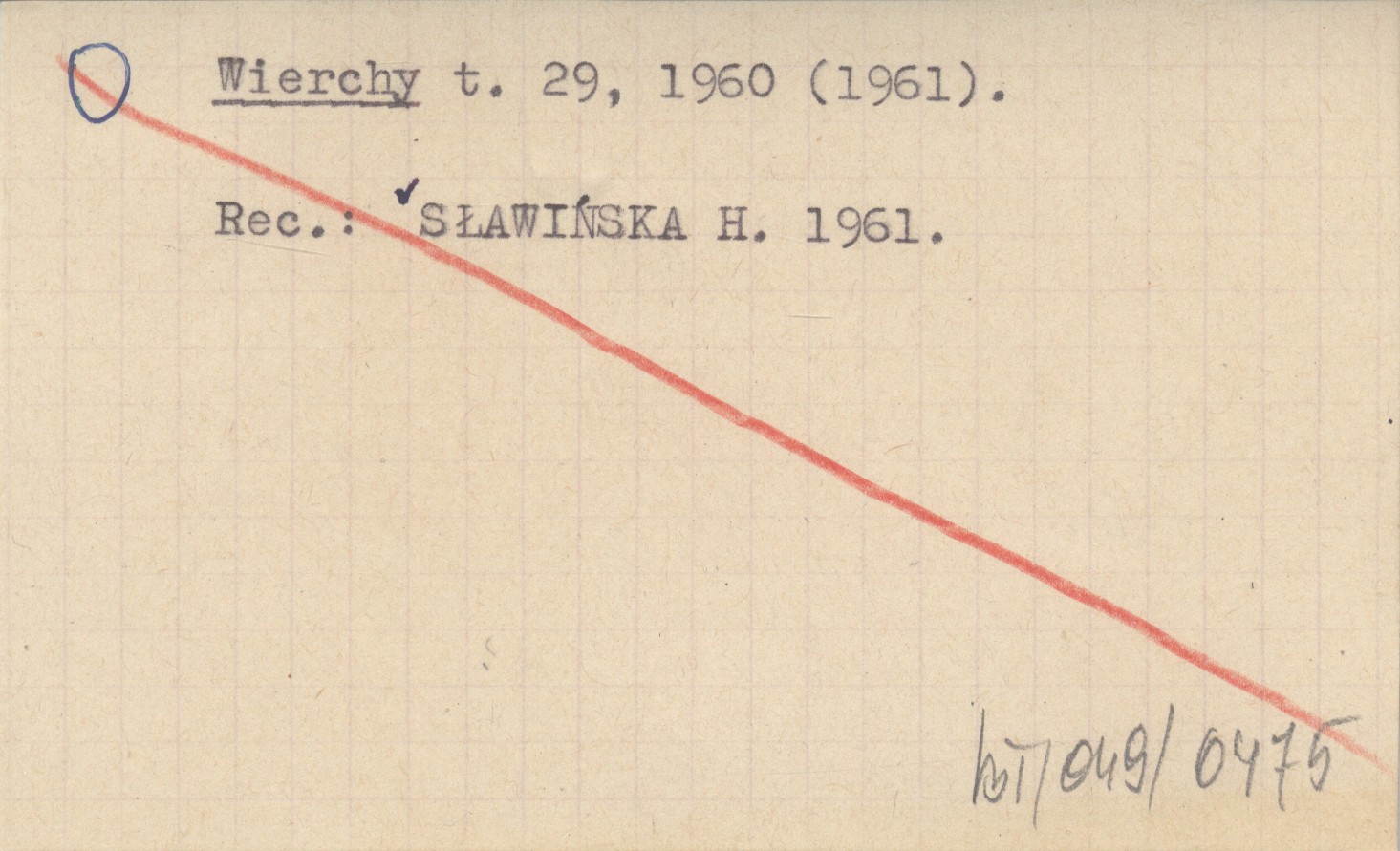 Wierchy, T. 29, 1960 (1961). REC: SŁAWIŃSKA H. 1961