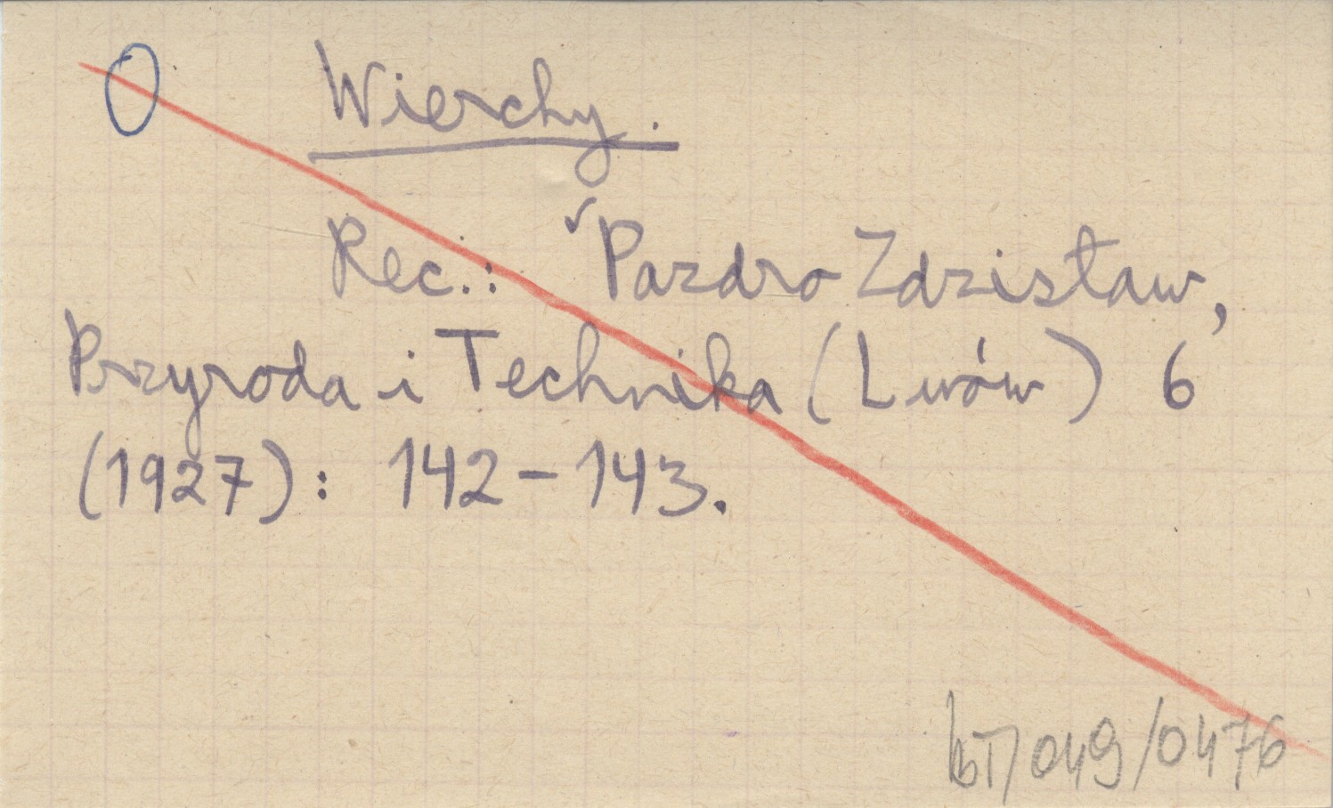REC: PAZDRO Zdzisław, Przyroda i Technika (Lwów) 6 (1927): 142-143.
