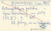 BUKOWIECKI Leon 1963 Retrospektywa polska.