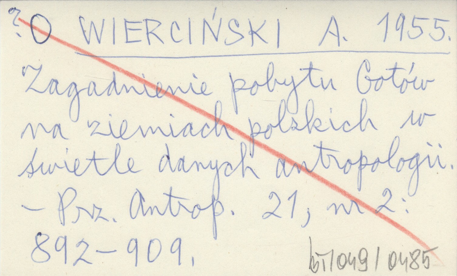 WIERCIŃSKI A. 1955 Zagadnienie pobytu Gotów na ziemiach polskich w świetle danych antropologii.