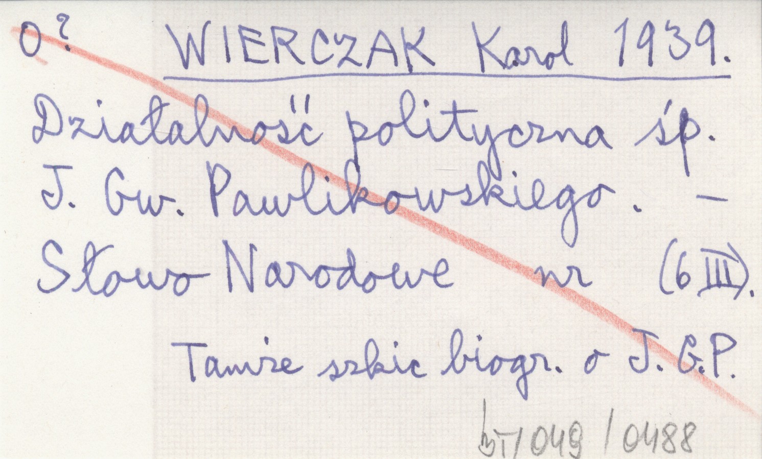 WIERCZAK Karol 1939 Działalność polityczna śp. J. Gw. Pawlikowskiego.