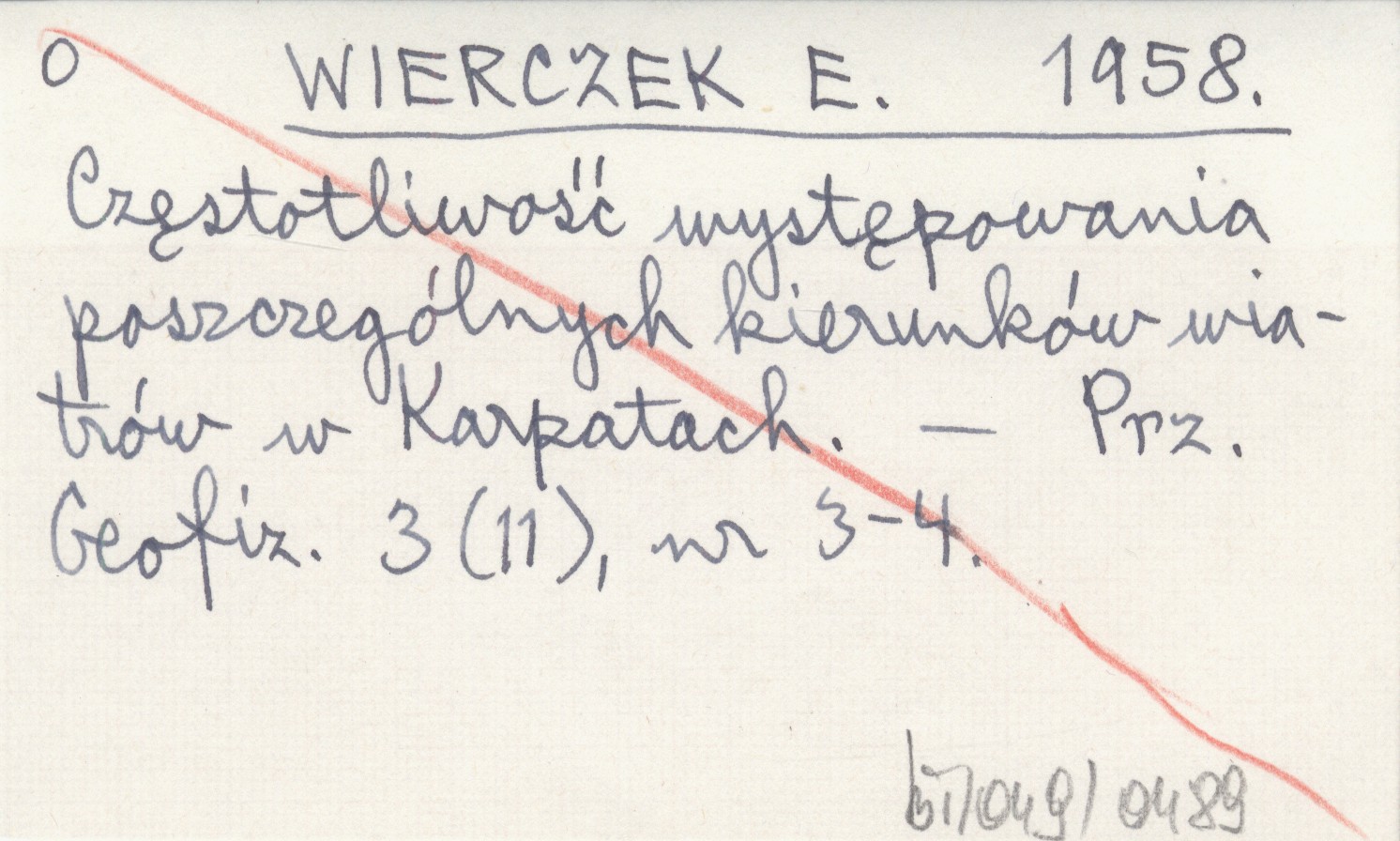 WIERCZEK E. 1958 Częstotliwość występowania poszczególnych kierunków wiatrów w Karpatach.