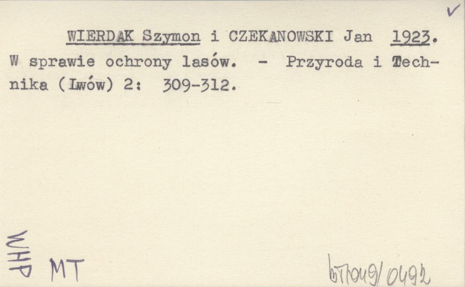 WIERDAK Szymon CZEKANOWSKI, Jan. ; 1923 W sprawie ochrony lasów.