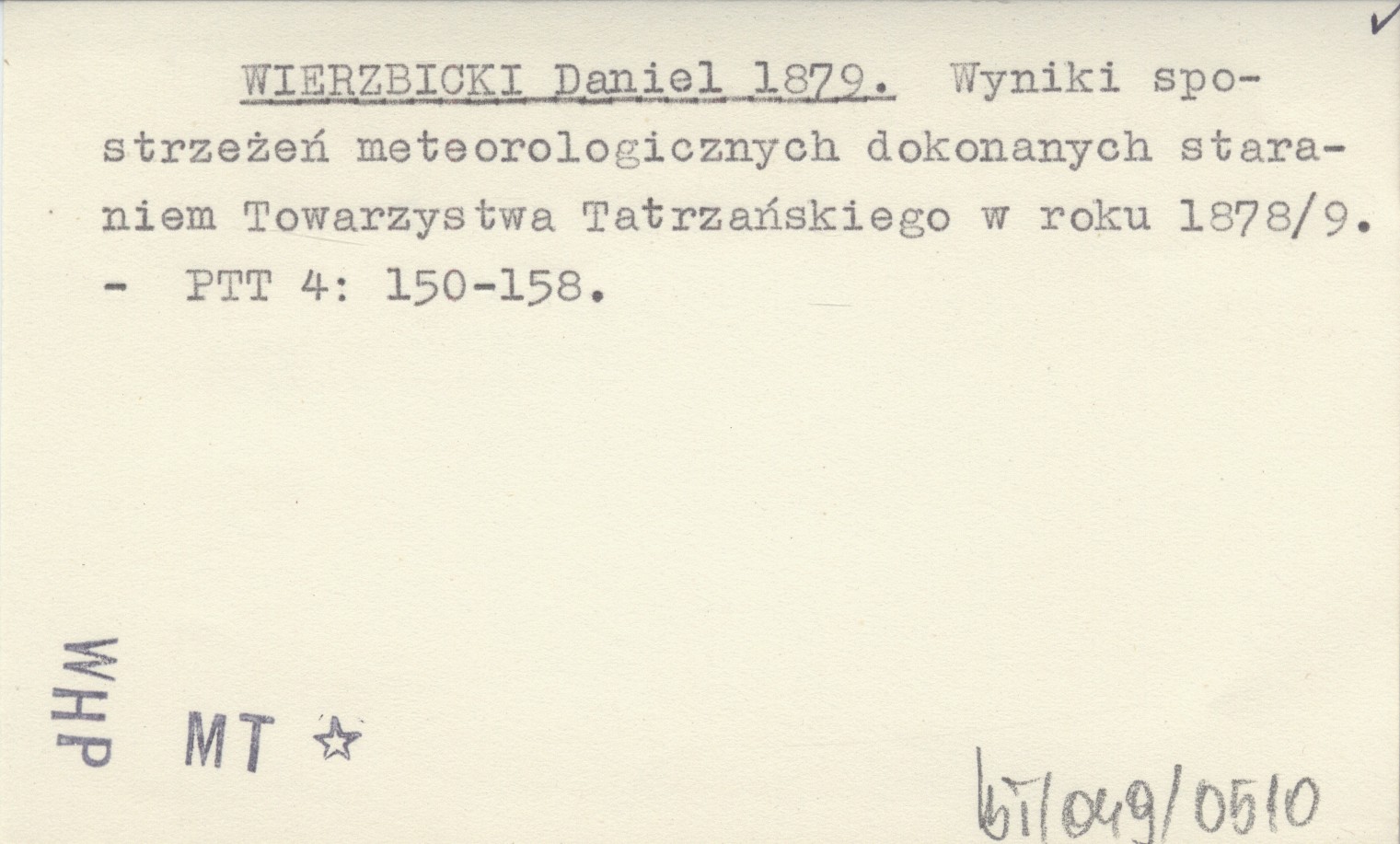 WIERZBICKI Daniel 1879 Wyniki spostrzeżeń meteorologicznych dokonanych staraniem Towarzystwa Tatrzańskiego w roku 1878/9.