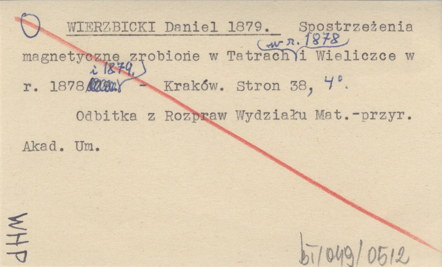 WIERZBICKI Daniel 1879 Spostrzeżenia magnetyczne zrobione w Tatrach r. 1878 i Wieliczce w r. 1878 i 1879.