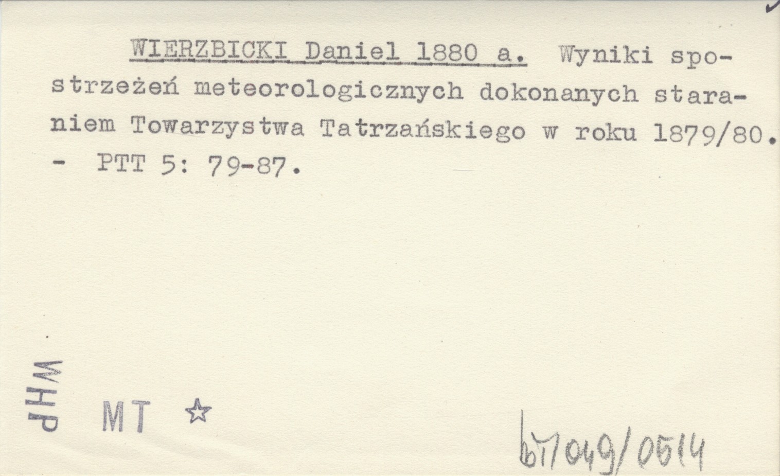 WIERZBICKI Daniel 1880 a Wyniki spostrzeżeń meteorologicznych dokonanych staraniem Towarzystwa Tatrzańskiego w roku 1879/80.