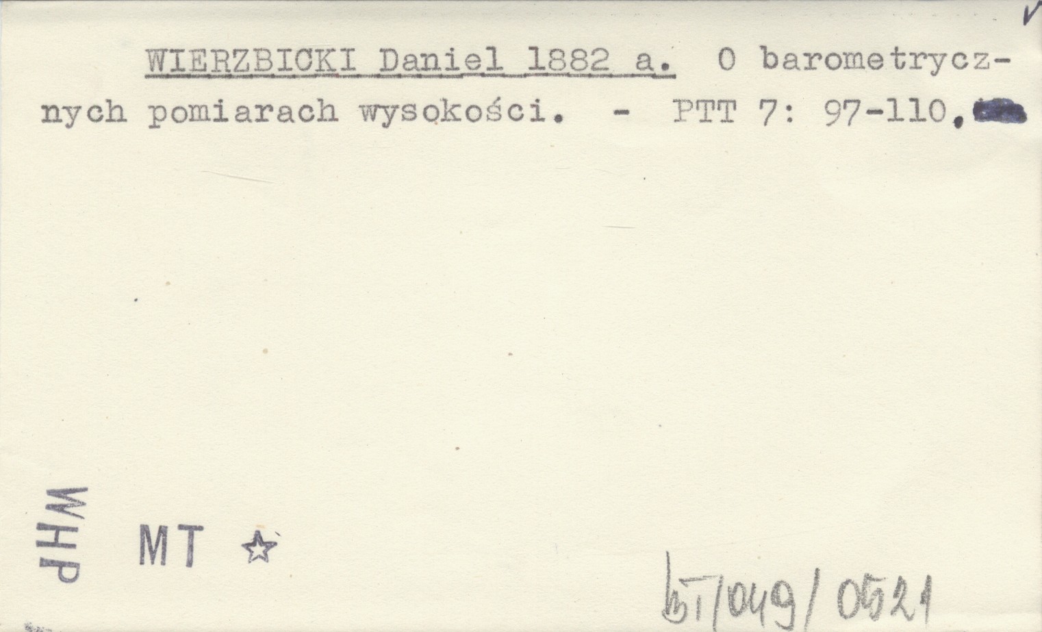 WIERZBICKI Daniel 1882 a O barometrycznych pomiarach wysokości.