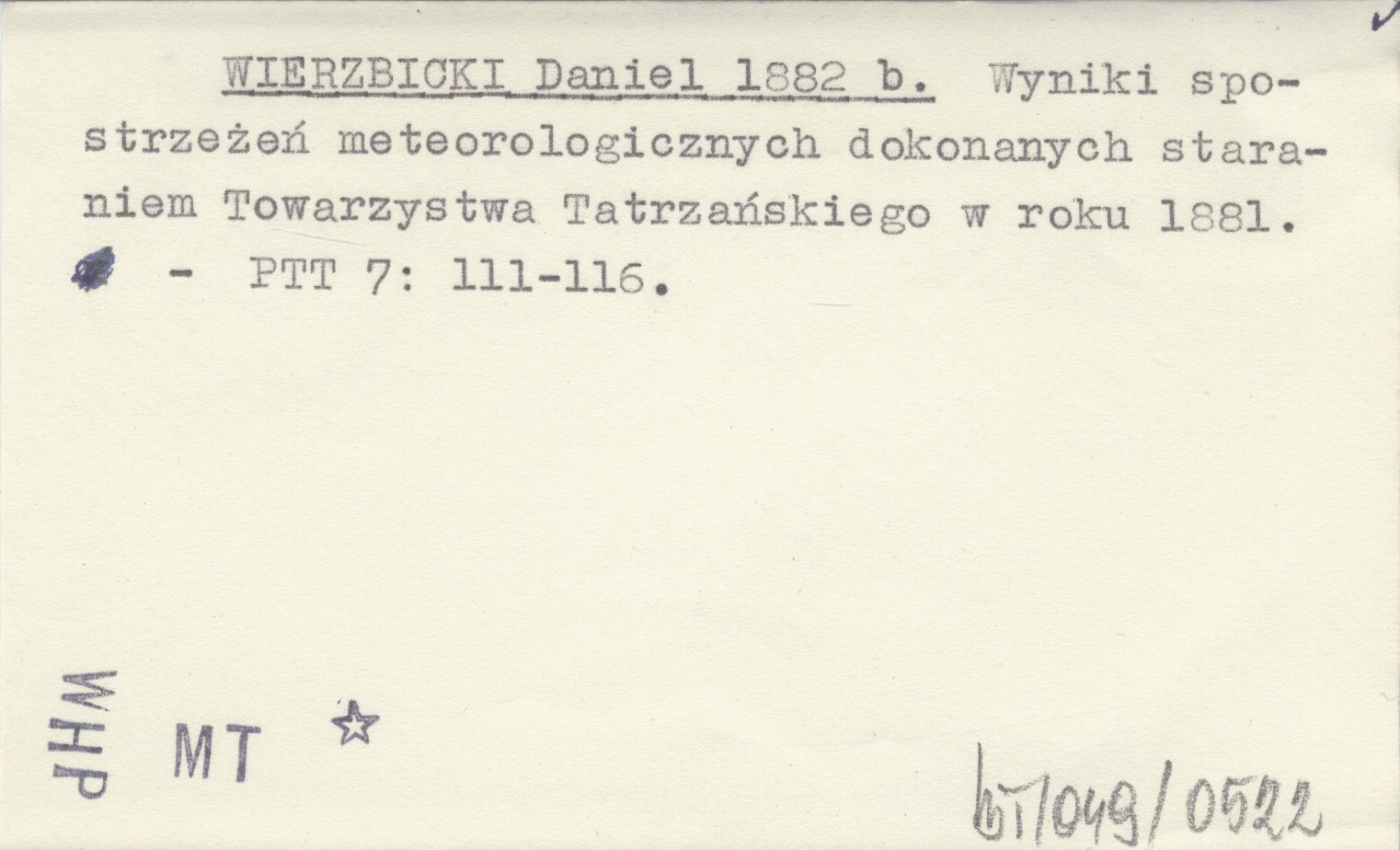 WIERZBICKI Daniel 1882 b Wyniki spostrzeżeń meteorologicznych dokonanych staraniem Towarzystwa Tatrzańskiego w roku 1881.